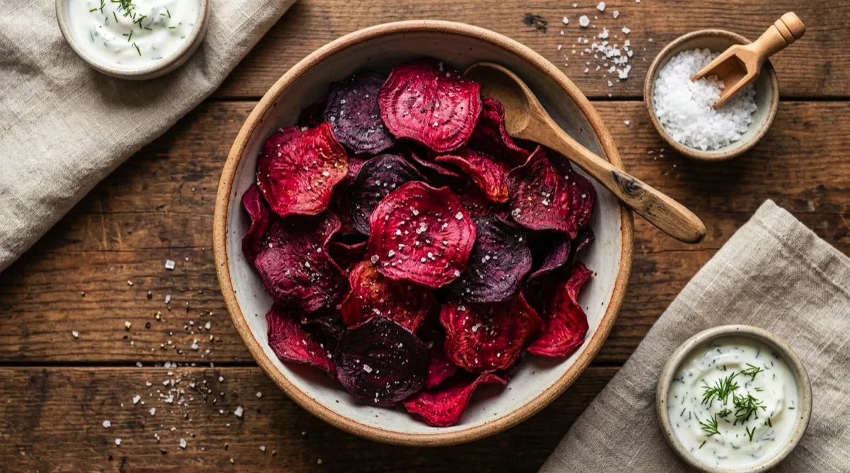 Tip: A mandoline is essential — you can't slice thin enough by hand. Lower temperature and longer time prevents burning while allowing moisture to evaporate. They'll seem slightly soft when hot but crisp up as they cool. Work in batches for best results.