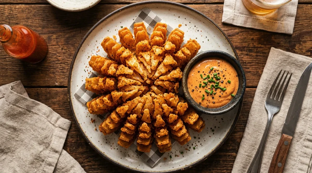 Mix sauce ingredients. Serve the blooming onion hot with dipping sauce in the center.