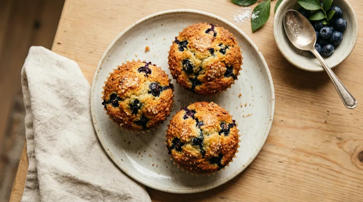 Tip: Toss the blueberries in a teaspoon of flour before folding them into the batter — this prevents them from sinking to the bottom during cooking. Frozen blueberries work well too, just don't thaw them first.