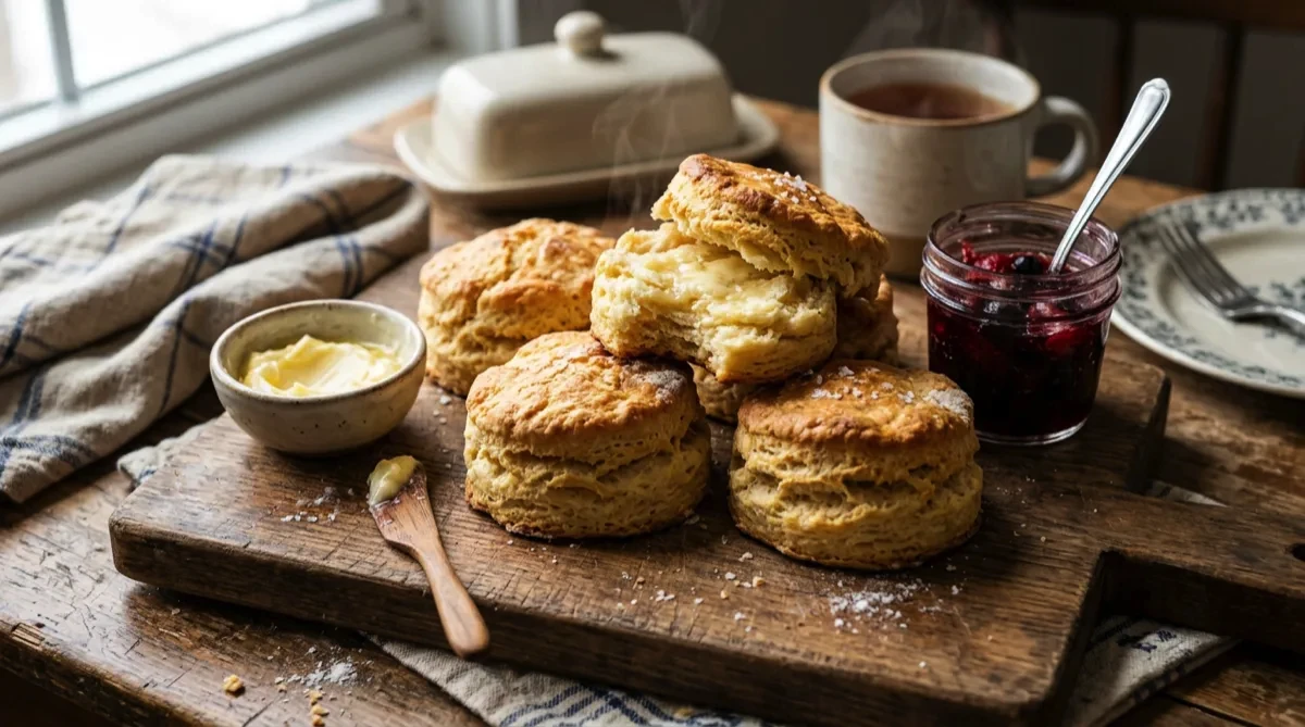 Tip: Cold butter and cold buttermilk are non-negotiable — they create steam pockets that make the layers. Twisting the cutter seals the edges and prevents rising.
