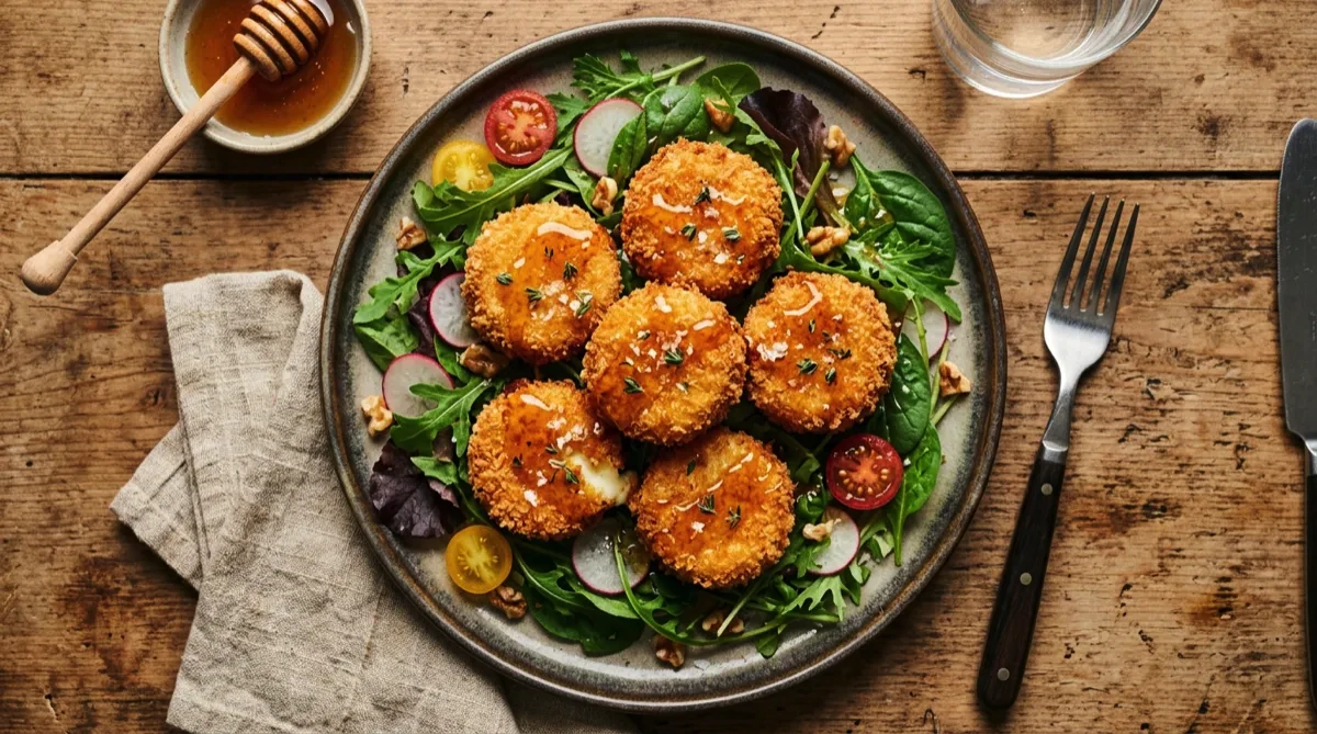 Tip: Cold goat cheese is easier to bread and holds its shape during cooking. It should be warm and creamy inside but not fully melted. These go from perfect to flat puddles quickly, so watch them. The honey drizzle on top is non-negotiable.
