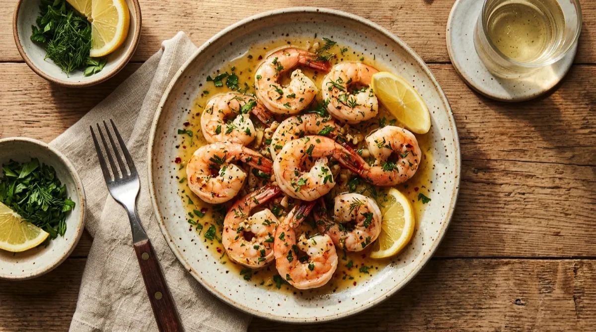 Tip: The key is not overcrowding — shrimp need space to get a sear, not steam. They cook fast, so watch carefully. Remove when they're pink with slightly charred spots. The buttery pan juices are liquid gold for bread dipping.