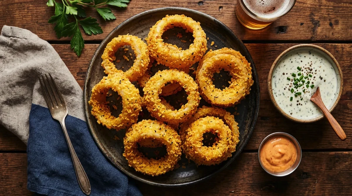 Tip: Sweet onions like Vidalia work best — they're milder and sweeter when cooked. The double dip (flour → buttermilk → panko) creates a thick, crunchy coating. Separate the rings before battering so you get individual, perfectly coated rings.