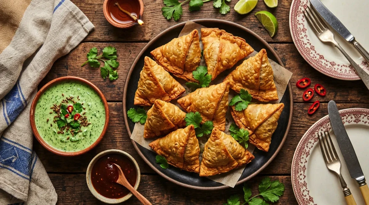 Tip: The filling must be completely cool before wrapping or the pastry gets soggy. Using spring roll wrappers is the easy shortcut — traditional samosa dough is labor-intensive. The cumin seeds should sizzle and pop in the oil before adding the other spices.