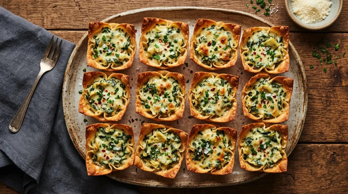 Tip: Squeeze every drop of water from the spinach or the filling will be watery. Pre-baking the wonton cups keeps them from getting soggy under the filling. These can be assembled ahead and refrigerated until ready to cook.