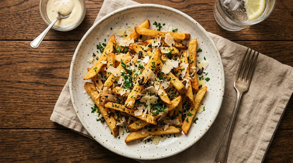 Tip: Add the truffle oil AFTER cooking — heat destroys its delicate flavor. A little goes a long way; too much truffle oil tastes artificial. Soaking the potatoes removes starch for crispier fries. These must be eaten immediately; they don't reheat well.