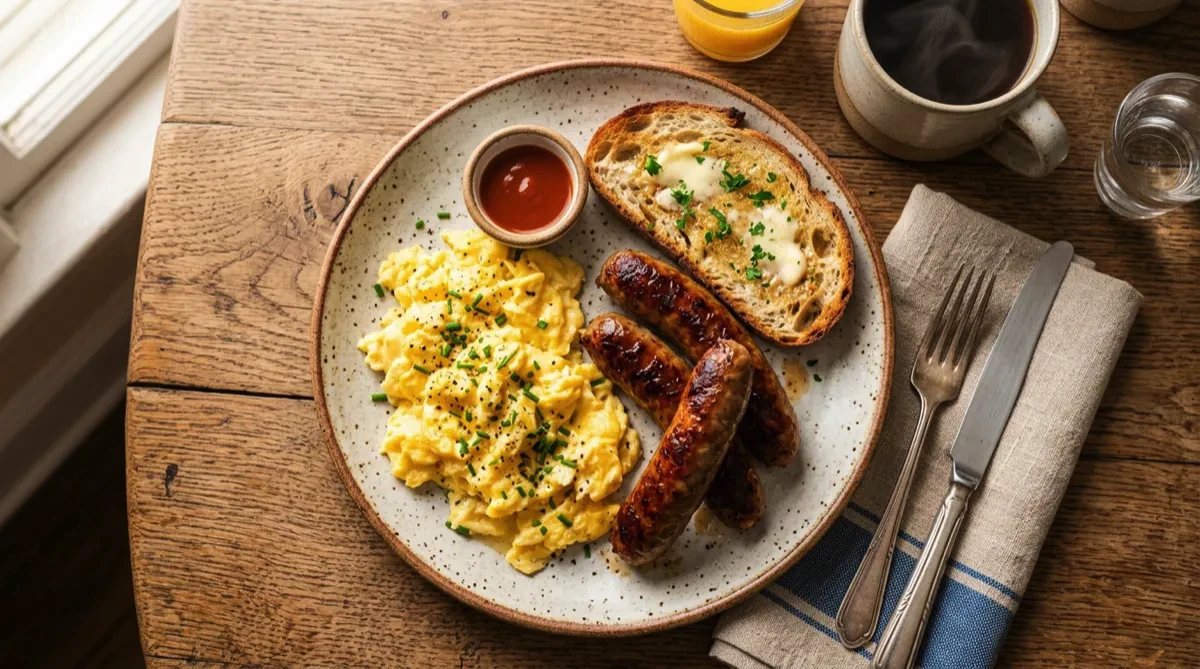 Thick-cut brioche dipped in vanilla cinnamon custard, air fried golden and crispy outside, custardy inside.