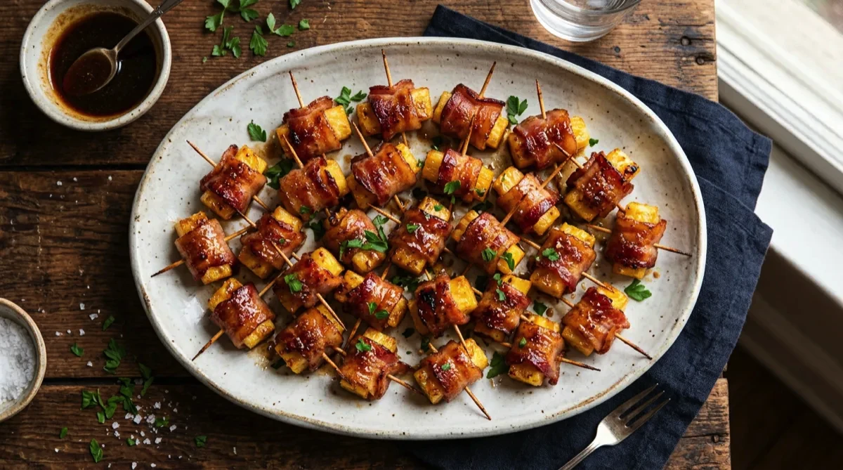 Tip: Use thin-cut bacon — thick bacon takes too long and the pineapple overcooks. Pat the pineapple very dry or the bacon steams. The brown sugar caramelizes into a sticky, addictive glaze.