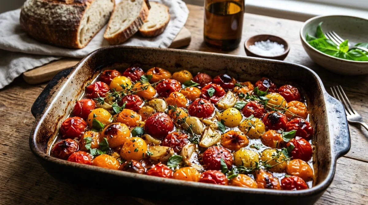 Tip: Use an oven-safe dish, not the bare basket — you want to capture all those jammy juices. They're liquid gold on bread or pasta.