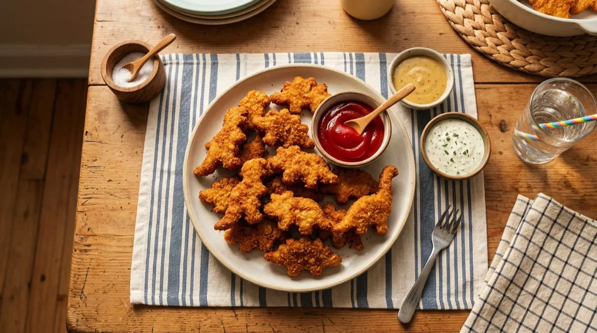 Place frozen dino nuggets in a single layer in the air fryer basket — no oil needed.