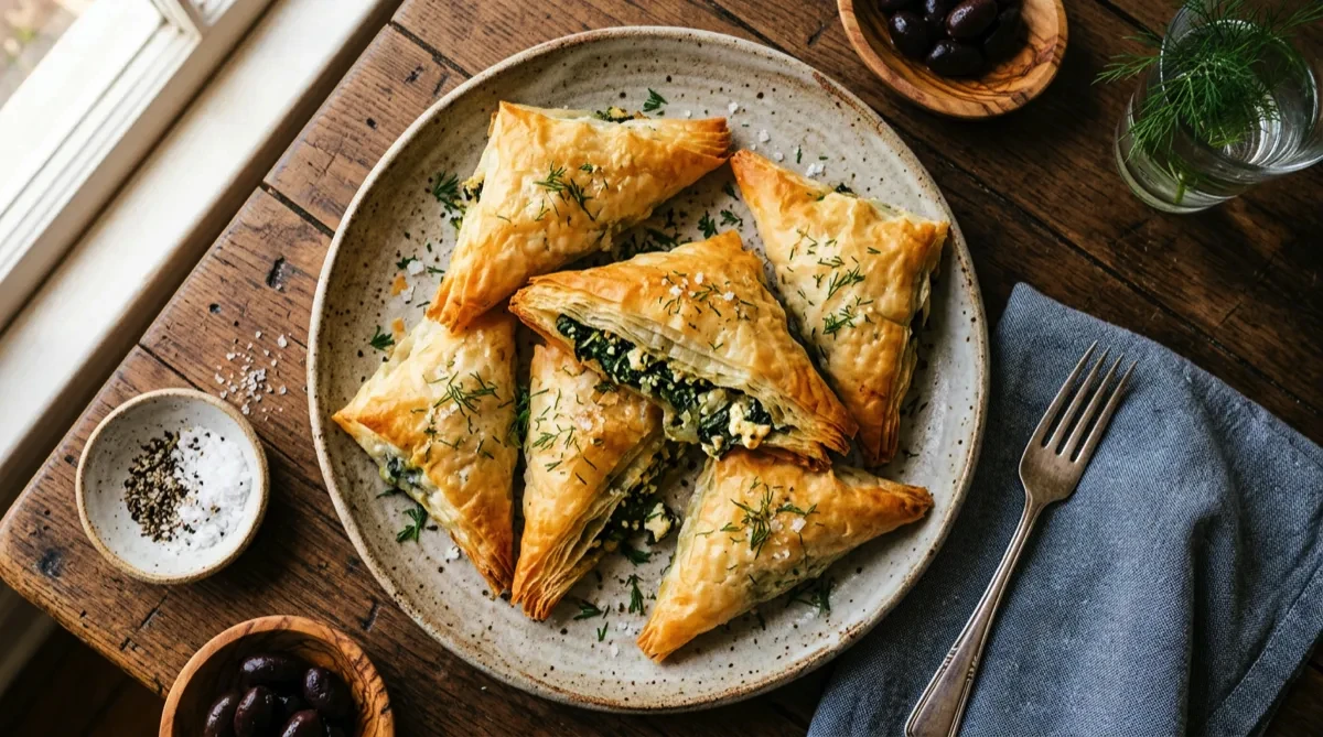 Tip: Keep unused phyllo covered with a damp towel — it dries out in minutes and becomes impossible to work with. Squeeze every drop of water from the spinach or the filling will be soggy.